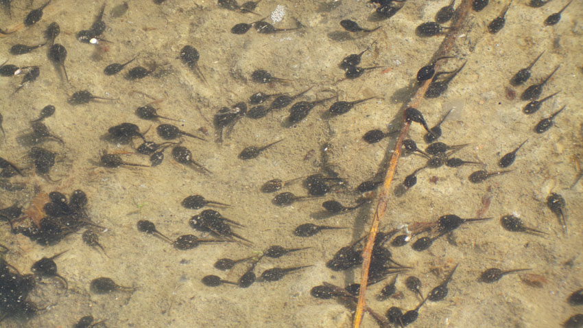 In a third pond they saw goldfish, presumably dumped there by a well meaning person…but this doesn’t do much good as the goldfish in a small pond eat the frog eggs and tadpoles ultimately eliminating these from the pond.