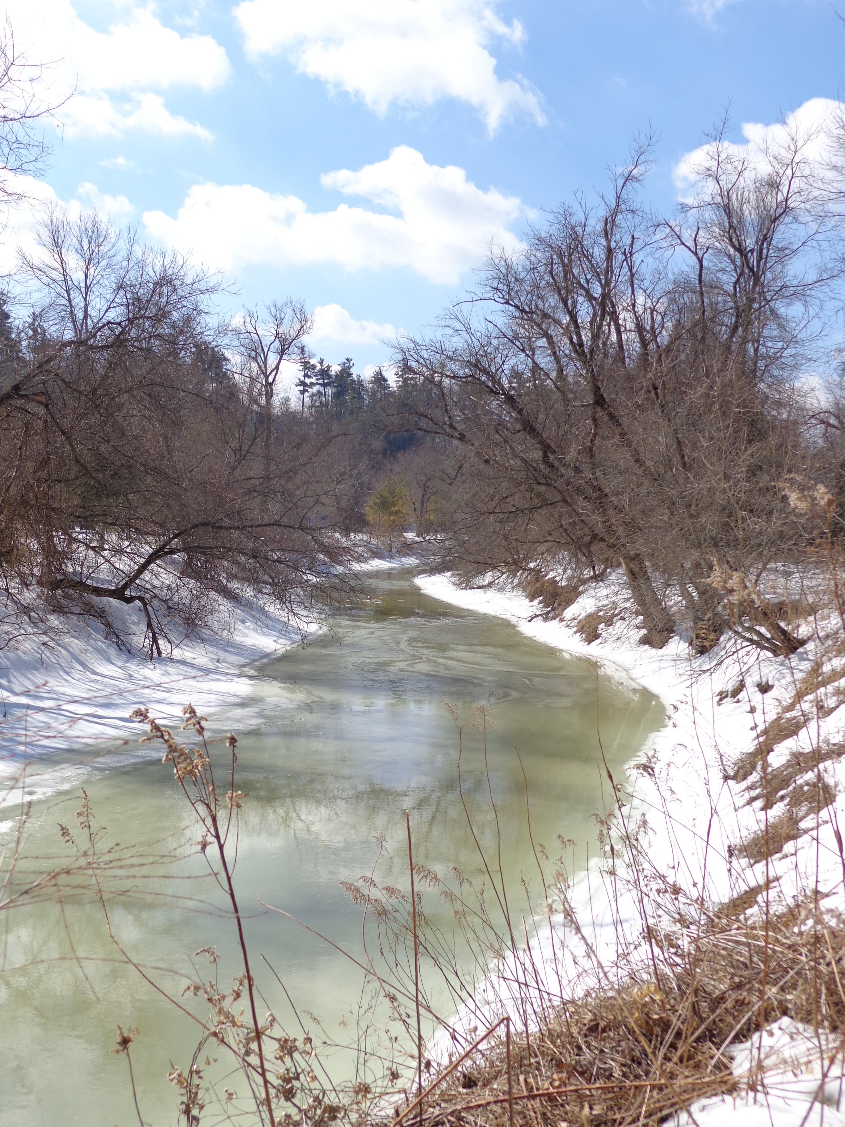 Great hike today in the sun and 4 degrees C,. it felt warm. Notice the chickadee. Also, the colours of the water hints of glacial melt…
